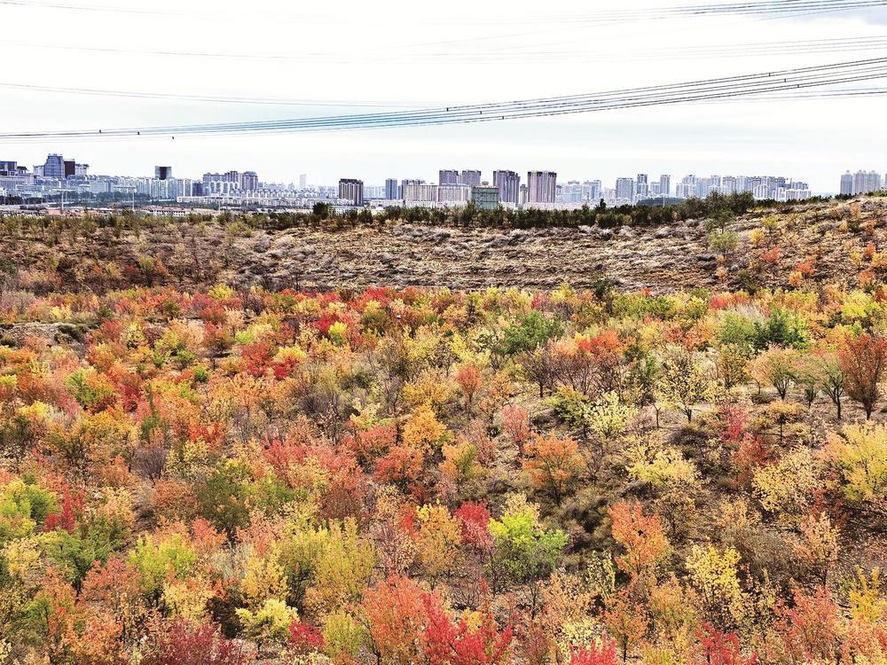 如果說黃河岸邊的秋景是溫柔的,那么甘德爾山的秋景則多了幾分豪邁與壯闊。沿著登山步道向上攀登,山路兩旁的灌木叢已經變成了紅色、黃色、橙色,五彩斑斕,層層疊疊,像大自然打翻了調色盤。站在山頂俯瞰,整個烏海市區(qū)盡收眼底,黃河像一條金色的絲帶纏繞在城市邊緣。秋風在耳邊呼嘯,帶著山間的清涼,讓人瞬間忘卻了城市的喧囂與煩惱。