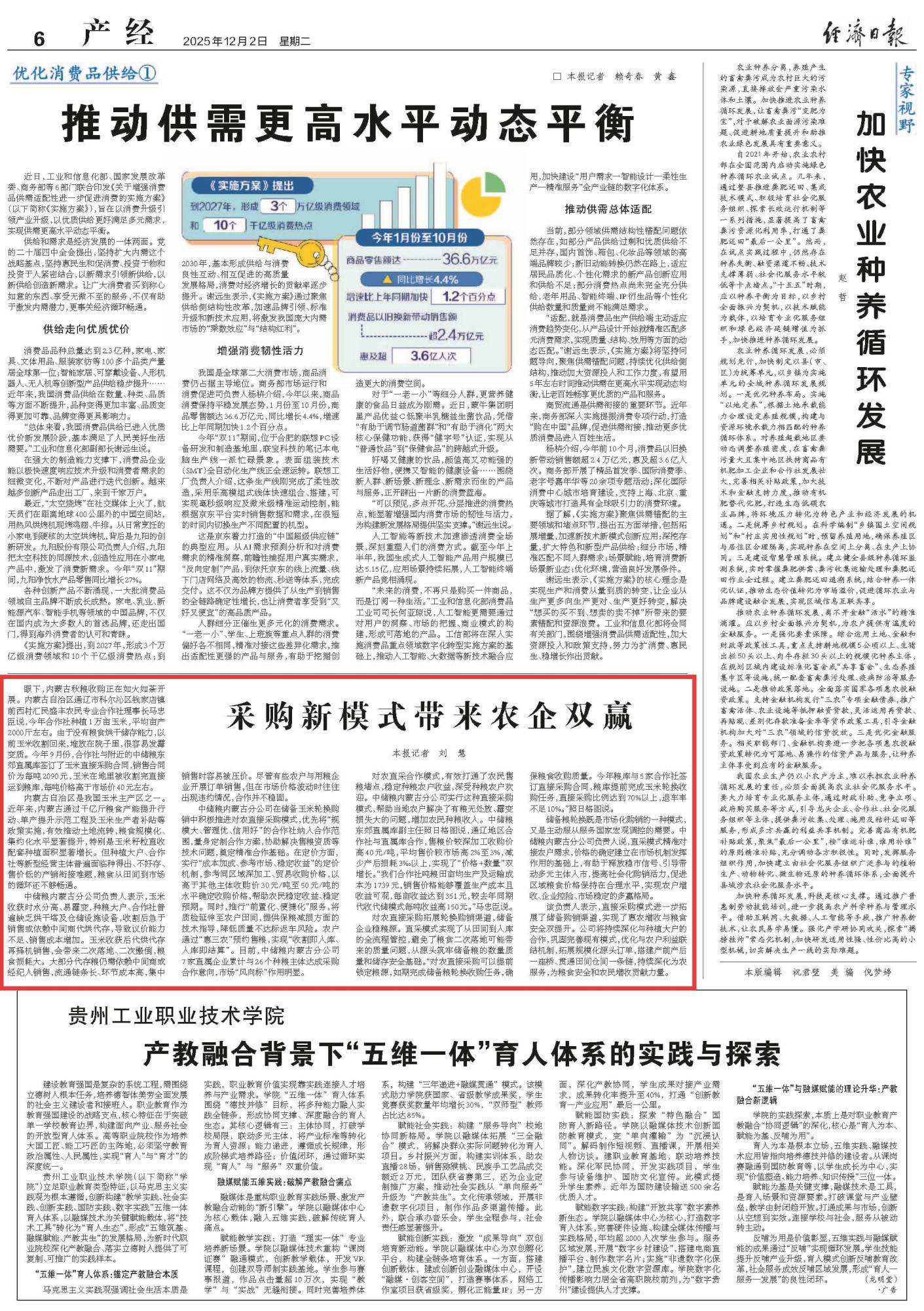 2025年12月2日,《經(jīng)濟日報》第6版刊發(fā)題為《采購新模式帶來農(nóng)企雙贏》的文章,報道了近年來,內(nèi)蒙古通過千億斤糧食產(chǎn)能提升行動、單產(chǎn)提升示范工程及玉米生產(chǎn)者補貼等政策實施,有效推動土地流轉(zhuǎn),糧食規(guī)?;⒓s化水平顯著提升,特別是積極推進對農(nóng)直接采購模式,進一步拓展了儲備購銷渠道,實現(xiàn)了惠農(nóng)增收與糧食安全雙提升。
