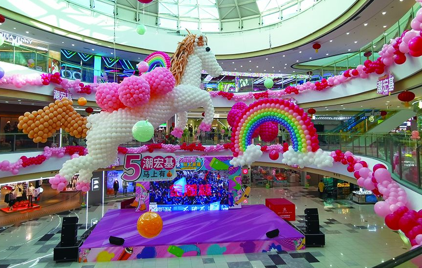 走進集寧區(qū)萬達廣場,一樓東門的跨年倒計時展板格外醒目,“約定,今年要和我愛的人一起跨年”的字樣搭配喜慶的紅色背景,將跨年的儀式感拉滿。商場內(nèi)部的布置巧思盡顯,中庭位置,巨型氣球打造的白色小馬造型栩栩如生,粉色、橙色氣球簇擁左右,一旁的彩虹氣球裝飾蜿蜒舒展,與各品牌門前統(tǒng)一的彩色氣球相映成趣,簡約的裝飾搭配讓節(jié)日氛圍愈發(fā)濃郁。