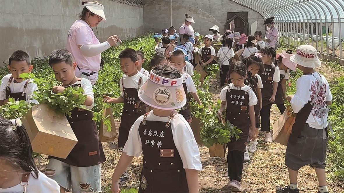 孩子們?cè)谇帏B(niǎo)養(yǎng)生莊園研學(xué)。