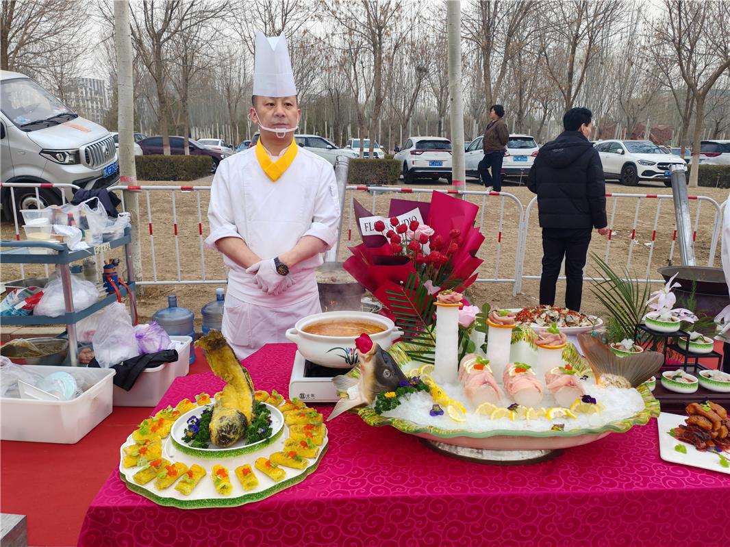 活動(dòng)現(xiàn)場(chǎng),最火爆的是開河魚躍?黃河美食春日廚藝盛典展區(qū),18家本地餐飲單位的廚師們?cè)谶@里同臺(tái)亮技,大家以黃河開河魚為核心食材,蒸、煮、煎、烤、燜各式技法齊上陣,一道道色香味俱全的黃河魚佳肴依次亮相。市民游客駐足品鑒、拍照打卡,鮮香四溢的魚味縈繞全場(chǎng),讓大家在舌尖上了解黃河飲食文化的獨(dú)特魅力。