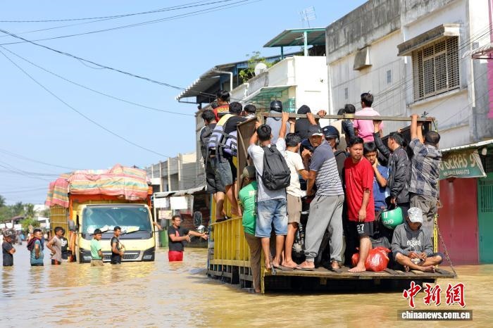 當(dāng)?shù)貢r(shí)間11月30日,印度尼西亞蘇門答臘島冷吉縣丹戎普拉鎮(zhèn),受災(zāi)民眾乘卡車出行。中新社記者 李志全 攝