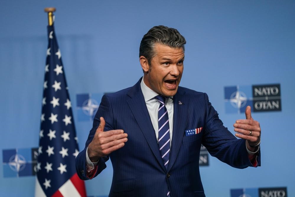 10月15日,在比利時布魯塞爾,美國國防部長赫格塞思在記者會上發(fā)言。新華社記者彭子洋攝