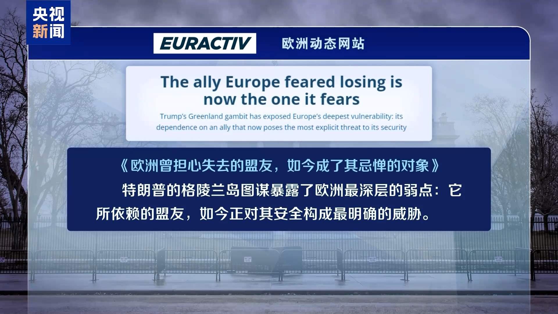 歐洲動(dòng)態(tài)網(wǎng)站6日以《歐洲曾擔(dān)心失去的盟友,如今成了其忌憚的對(duì)象》為題評(píng)論說(shuō),“特朗普的格陵蘭島圖謀暴露了歐洲最深層的弱點(diǎn):它所依賴的盟友,如今正對(duì)其安全構(gòu)成最明確的威脅。”文章還提醒說(shuō),我們正進(jìn)入一個(gè)“強(qiáng)權(quán)即公理”的新世界——而歐洲人對(duì)此毫無(wú)準(zhǔn)備?;蛟S,格陵蘭島可能帶來(lái)的羞辱,將促使歐洲人反思這一現(xiàn)狀,并最終采取行動(dòng)改變局面。