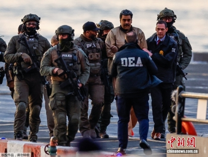 當(dāng)?shù)貢r(shí)間1月5日,委內(nèi)瑞拉總統(tǒng)馬杜羅抵達(dá)美國(guó)紐約聯(lián)邦法庭,將在這里首次出庭受審。圖為馬杜羅在前往法院途中。