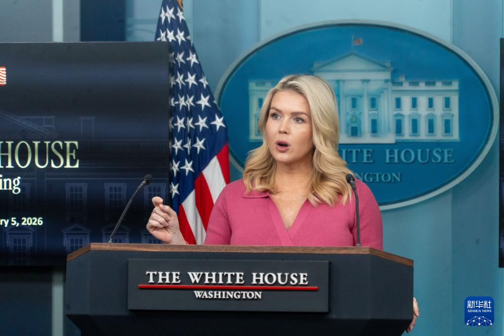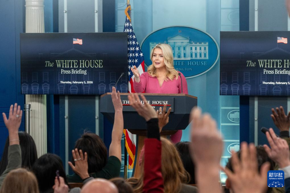 2月5日,在美國首都華盛頓白宮,白宮新聞秘書萊維特出席記者會。新華社發(fā)(李源清攝)