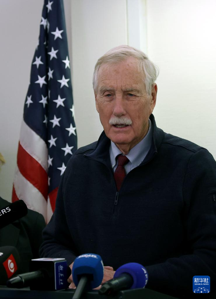 2月9日,在丹麥自治領(lǐng)地格陵蘭島首府努克,美國緬因州獨立參議員安格斯·金出席新聞發(fā)布會。新華社記者 李穎 攝