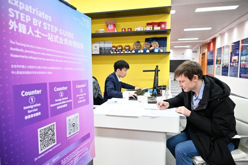 2月25日,在太倉市外籍人士服務中心,一名德企員工在辦理業(yè)務。(圖片來源:新華社)