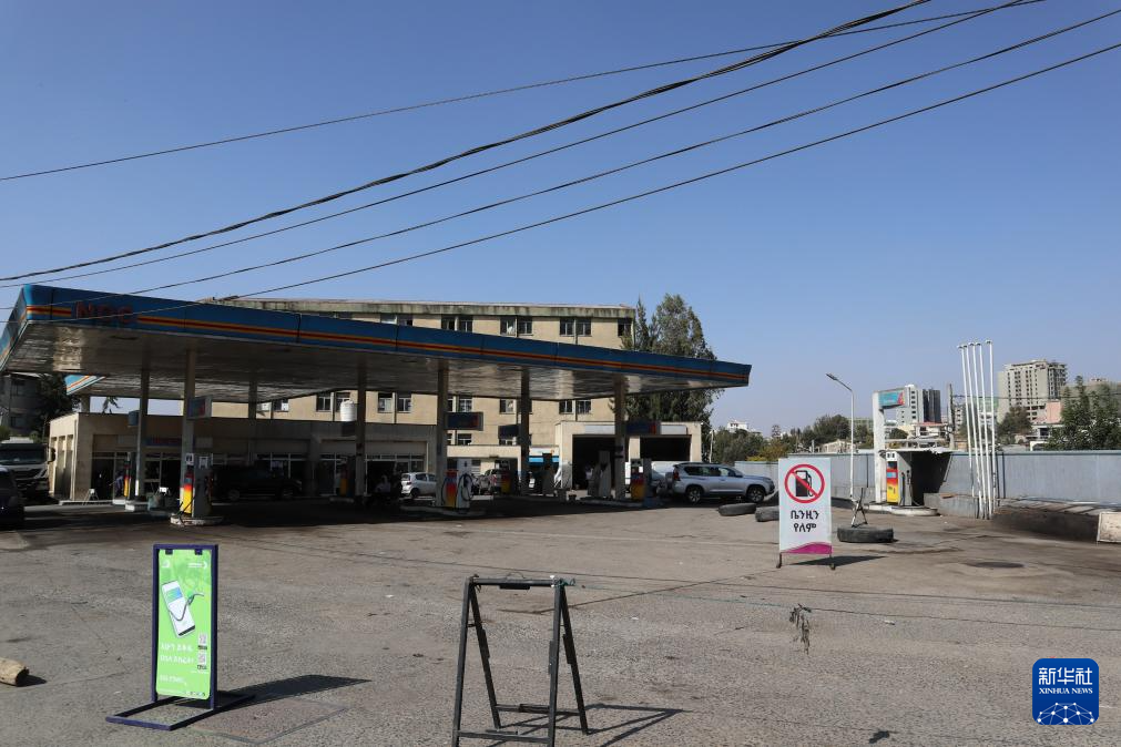 3月17日,在埃塞俄比亞首都亞的斯亞貝巴,由于石油供應(yīng)緊張,一個加油站暫停營業(yè)。新華社記者 劉方強(qiáng) 攝
