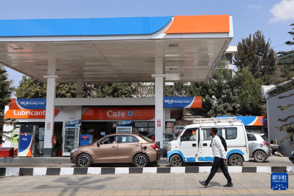 3月17日,在埃塞俄比亞首都亞的斯亞貝巴,行人走過一個加油站。新華社記者 劉方強(qiáng) 攝
