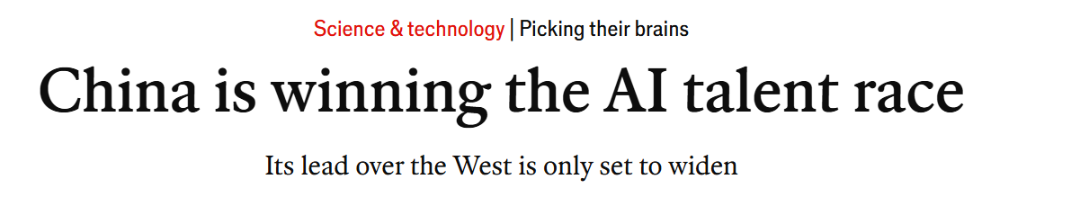 英國《經(jīng)濟(jì)學(xué)人》雜志網(wǎng)站近日發(fā)表題為《中國正贏得人工智能人才競賽》的文章。文章認(rèn)為,中國領(lǐng)先于西方國家的人才優(yōu)勢正在擴(kuò)大。