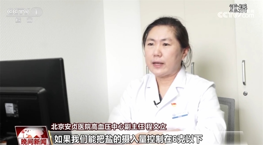 北京安貞醫(yī)院高血壓中心副主任 程文立:如果我們能把鹽的攝入量控制在6克以下,那么血壓能夠降低大概三到六個(gè)mmHg這么多,所以說(shuō)食鹽對(duì)血壓影響其實(shí)是很大的。