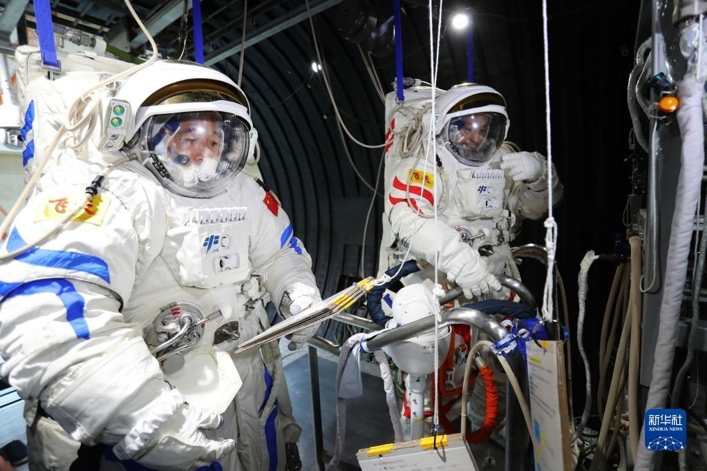 神舟十六號航天員乘組進(jìn)行航天服操作訓(xùn)練(2022年10月19日攝)。新華社發(fā)(徐部 攝)