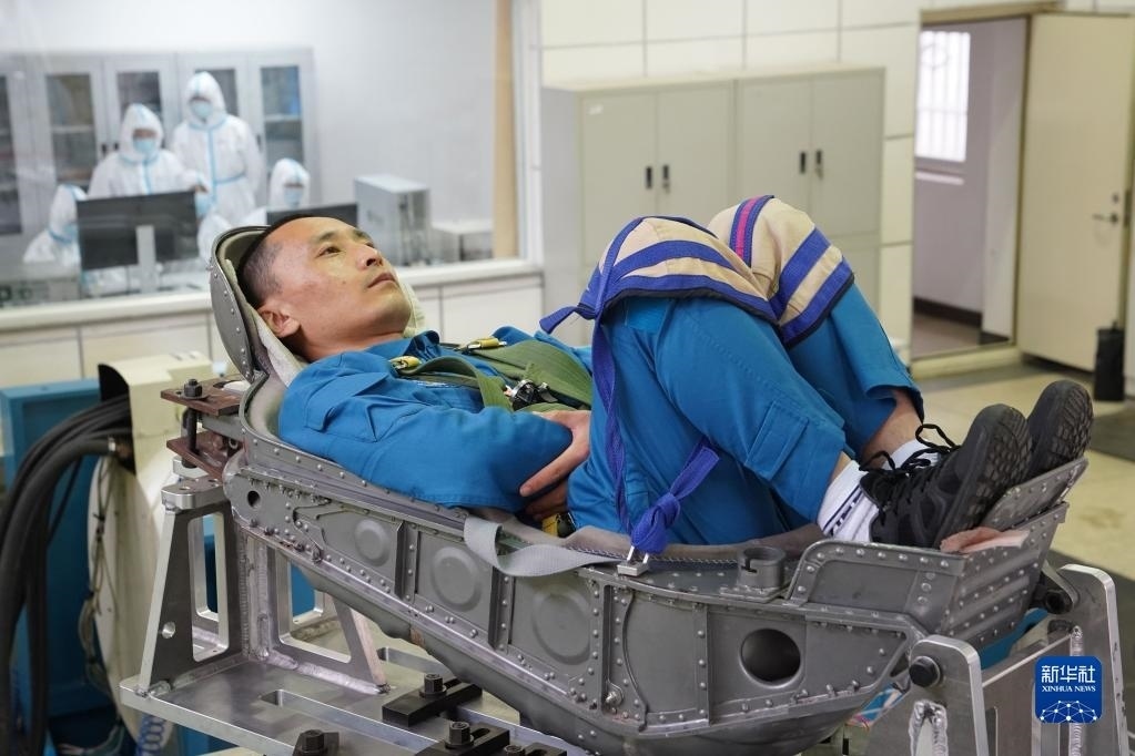神舟十六號航天員桂海潮進(jìn)行離心機(jī)訓(xùn)練(2023年4月6日攝)。新華社發(fā)(徐部 攝)