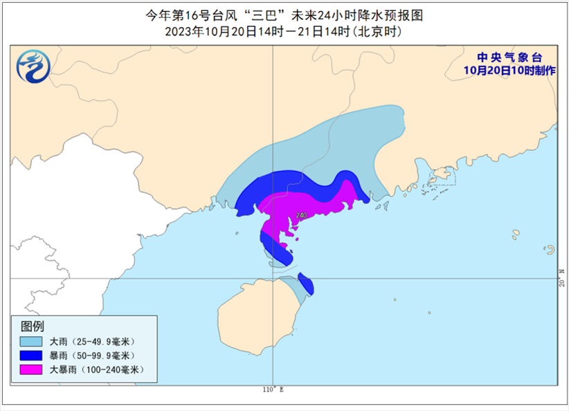 央視網消息:中央氣象臺10月20日10時繼續(xù)發(fā)布臺風藍色預警: