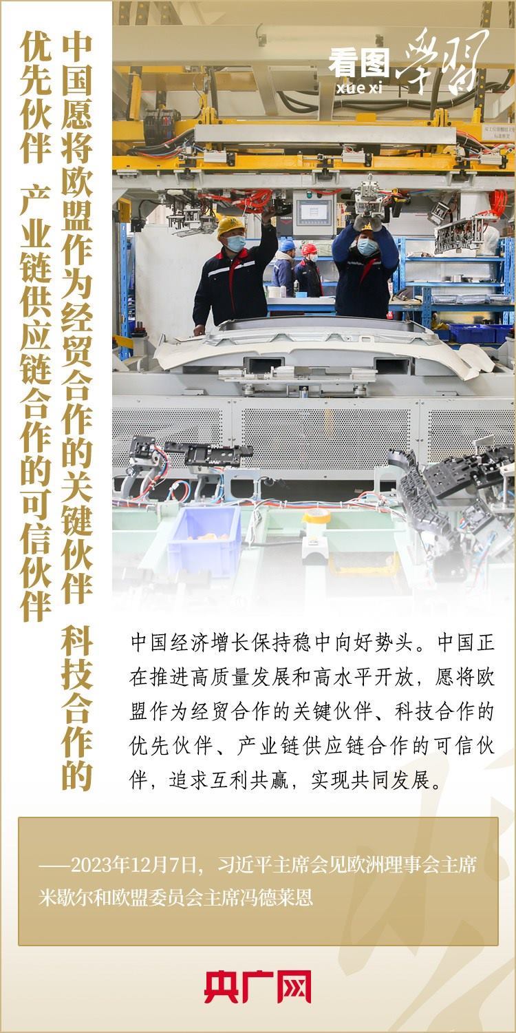 12月7日,國(guó)家主席習(xí)近平會(huì)見來華舉行第二十四次中國(guó)—?dú)W盟領(lǐng)導(dǎo)人會(huì)晤的歐洲理事會(huì)主席米歇爾和歐盟委員會(huì)主席馮德萊恩,雙方就事關(guān)中歐關(guān)系的戰(zhàn)略性問題,以及中歐各領(lǐng)域?qū)υ捄献?、雙方重點(diǎn)關(guān)切、全球治理、國(guó)際和地區(qū)熱點(diǎn)問題等深入坦誠(chéng)交換看法,并就一系列問題達(dá)成重要共識(shí)。今年是中歐建立全面戰(zhàn)略伙伴關(guān)系20周年,習(xí)主席強(qiáng)調(diào),中歐關(guān)系具有戰(zhàn)略意義和世界影響,關(guān)乎世界和平、穩(wěn)定、繁榮。一起來學(xué)習(xí)!