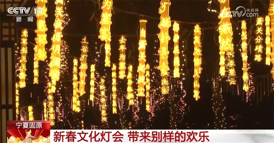 在寧夏固原的“西湖公園”內,一場以詩詞花燈、主題花燈為主的新春文化燈會給當?shù)匕傩諑韯e樣的歡樂。