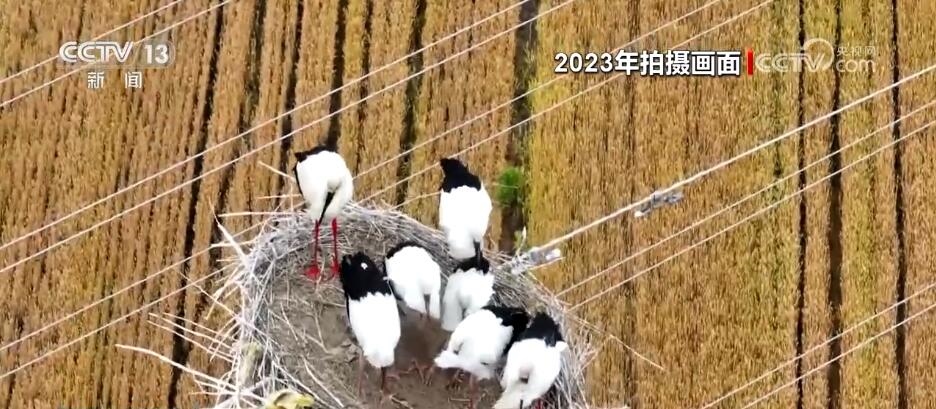 春暖花開(kāi),又到了候鳥(niǎo)北歸的時(shí)候,在江蘇宿遷市,攝影愛(ài)好者連續(xù)三年拍攝到東方白鸛在此筑巢。在宿遷市泗洪縣魏營(yíng)鎮(zhèn)一處輸電鐵塔附近,攝影愛(ài)好者張連華帶著相機(jī),為這對(duì)剛搬來(lái)不久的客人拍起了“全家福”。張連華對(duì)東方白鸛在泗洪的生活開(kāi)始進(jìn)行了記錄,2022年、2023年,他拍攝到了三對(duì)東方白鸛,在這里繁殖了11只幼鳥(niǎo)。