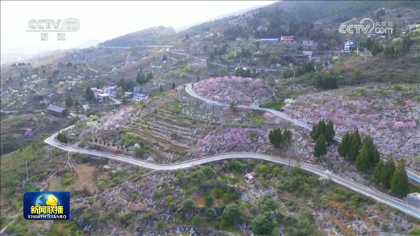 桃紅李白、花滿枝頭,貴州印江萬畝石漠化生態(tài)治理公園里,游客們賞花拍照,怡然自得。過去亂石灘,今日“花果山”,造福群眾,游客點(diǎn)贊。