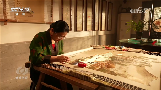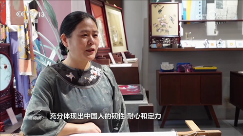 盧建英:“當(dāng)時(shí)我在繡一幅《桃花太平鳥圖》,習(xí)近平總書記走到了我的繃架前。他說你好,很親切,很和藹,看得非常仔細(xì)。他說中華文化的傳承力有多強(qiáng),通過這個(gè)蘇繡可以看出來,像這樣的功夫充分體現(xiàn)出中國人的韌性、耐心和定力,這是中華民族精神的一部分,能得到總書記的認(rèn)可,真的是倍感榮耀。”