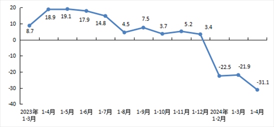 1—4月,全市房地產(chǎn)開發(fā)企業(yè)房屋新開工面積312.8萬平方米,同比下降22.7%。其中,住宅新開工面積162萬平方米,下降25.5%;辦公樓11.6萬平方米,下降52.1%;商業(yè)營(yíng)業(yè)用房11.1萬平方米,下降48.4%。