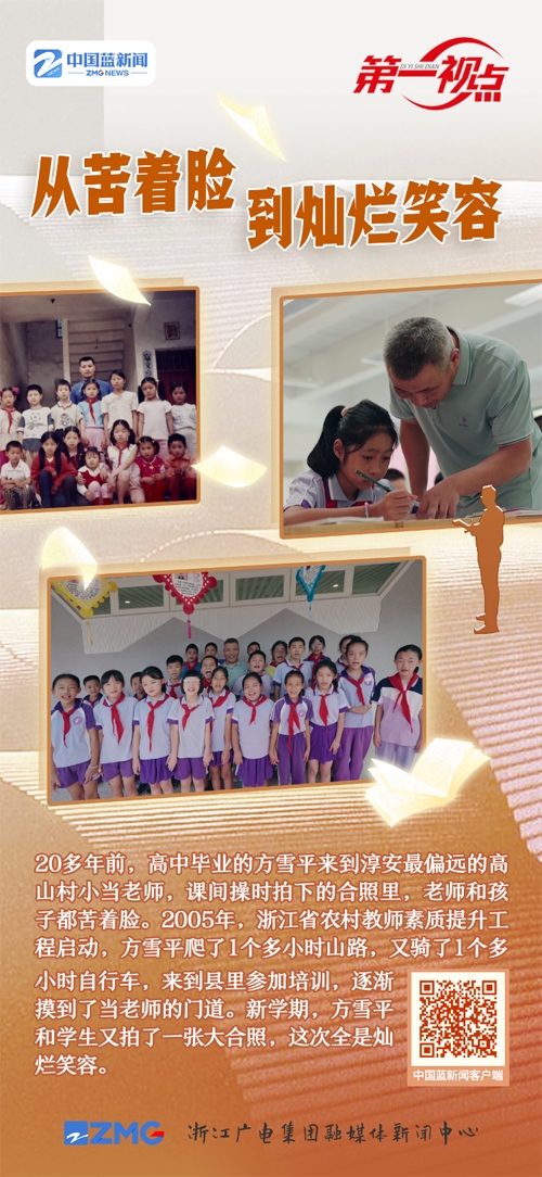 彼時(shí)的浙江,小學(xué)教師的學(xué)歷達(dá)標(biāo)率,在全國(guó)排位倒數(shù)。高中畢業(yè)的農(nóng)村老師方雪平,來(lái)到淳安最偏遠(yuǎn)的高山村小。一個(gè)人,要教兩個(gè)年級(jí)20多個(gè)孩子的全部科目。一次課間操時(shí),村小老師拍下的照片,無(wú)論是老師還是孩子,一個(gè)個(gè)都苦著臉。方雪平說:“當(dāng)時(shí)(上課時(shí))我心里是很緊張的,緊張到手心冒汗。外出培訓(xùn)的機(jī)會(huì)幾乎是沒有的,自己慢慢去摸索唄?!?/p>