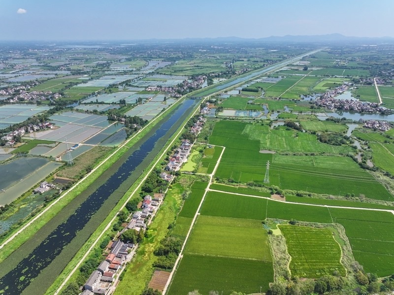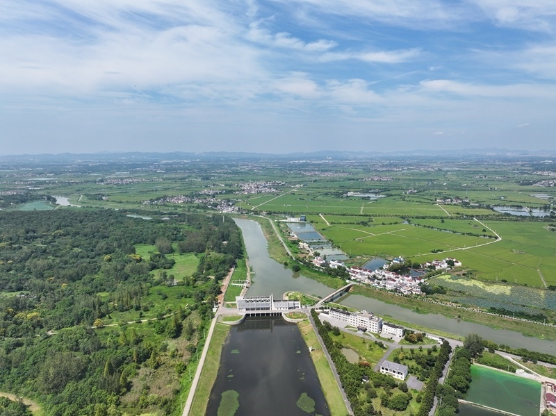 9月15日拍攝的江蘇句容赤山湖灌溉工程灌區(qū)(無(wú)人機(jī)全景照片)。