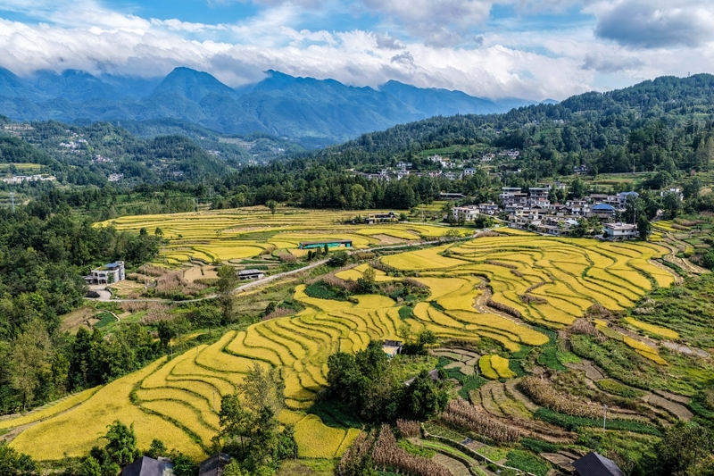 這是9月18日拍攝的重慶市黔江區(qū)五里鎮(zhèn)梯田景色(無(wú)人機(jī)照片)。