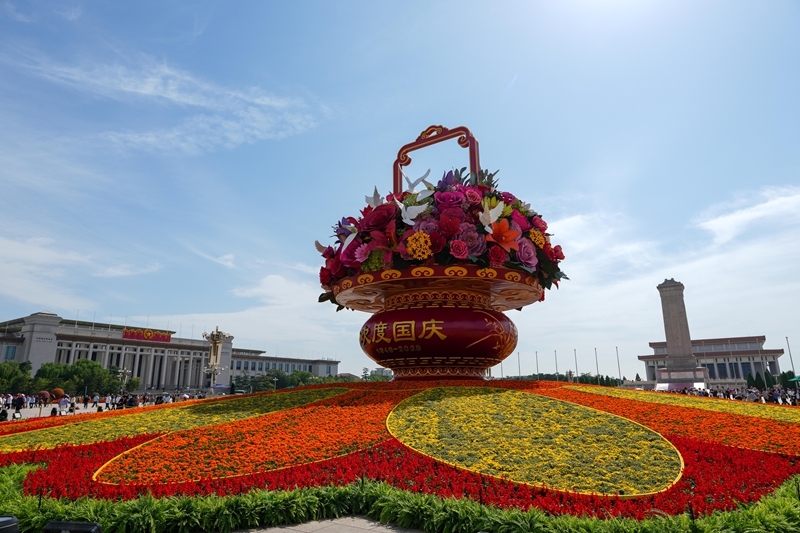 9月25日在天安門廣場(chǎng)拍攝的“祝福祖國(guó)”大花籃。