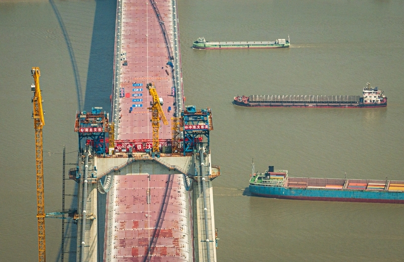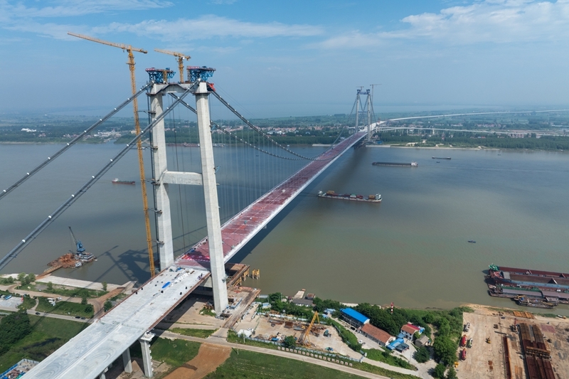 7月26日拍攝的合龍后的雙柳長江大橋(無人機(jī)照片)。