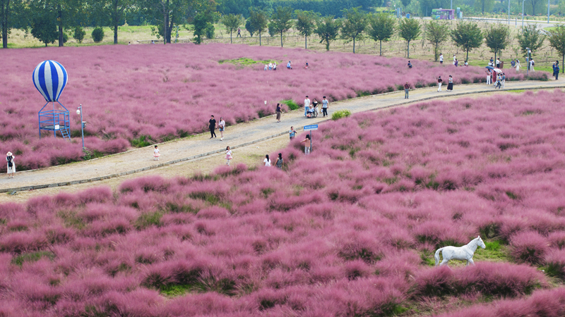 10月5日,人們?cè)谀暇┌素灾弈吧匣ǘ捎瓮妫o人機(jī)照片)。
