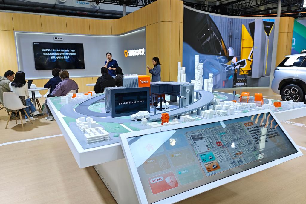 在滴滴自動駕駛展臺,智能沙盤展示全無人Robotaxi運營場景。新華社記者 唐詩凝 攝