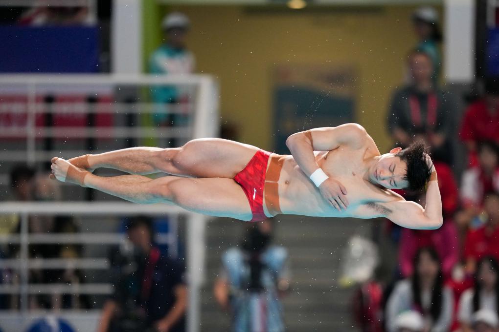 11月3日,湖北隊(duì)選手王宗源在男子三米板比賽中。新華社記者 薛宇舸 攝
