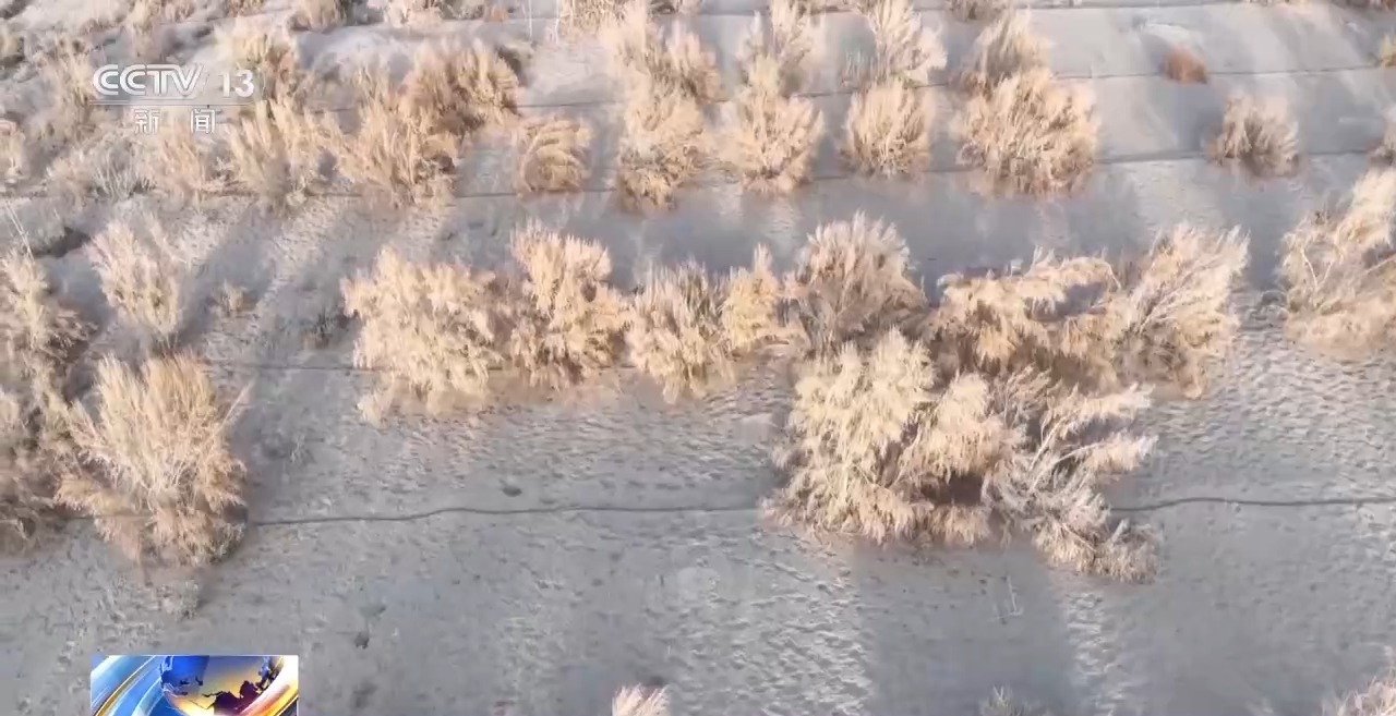 中國科學(xué)院新疆生態(tài)與地理研究所策勒沙漠研究站站長 曾凡江:昆侖山下來有一股水,自然形成的一條河,我們就巧妙地把這個(gè)河利用起來了,雖然水量不是那么大,但是它常年那種沖刷,寬度還是有的,這條河正好是跟沙漠前沿的過來的沙子一部分就沉積在沙河里面。