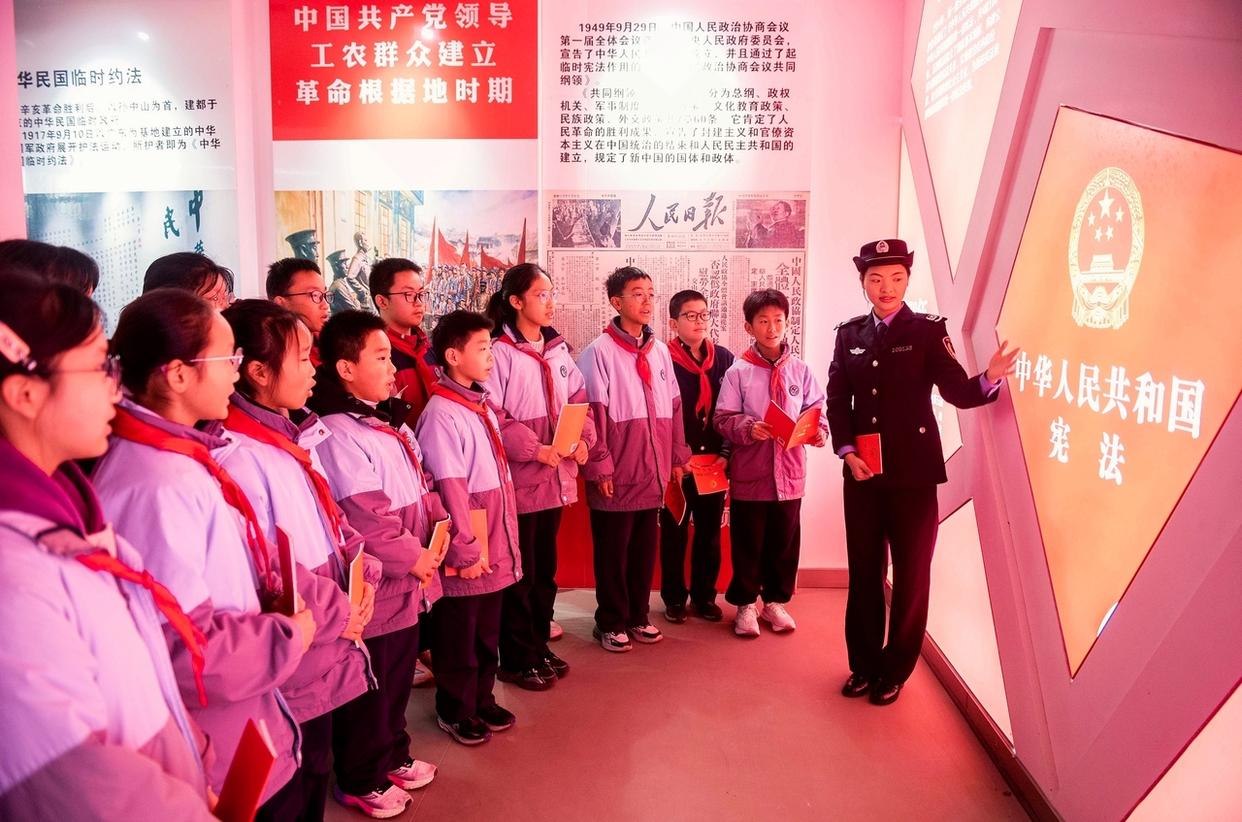 12月3日,安徽省馬鞍山市雨山區(qū)雨山實驗學(xué)校,司法干警給學(xué)生解讀憲法核心內(nèi)容。(工人日報通訊員 歐宗濤 攝)