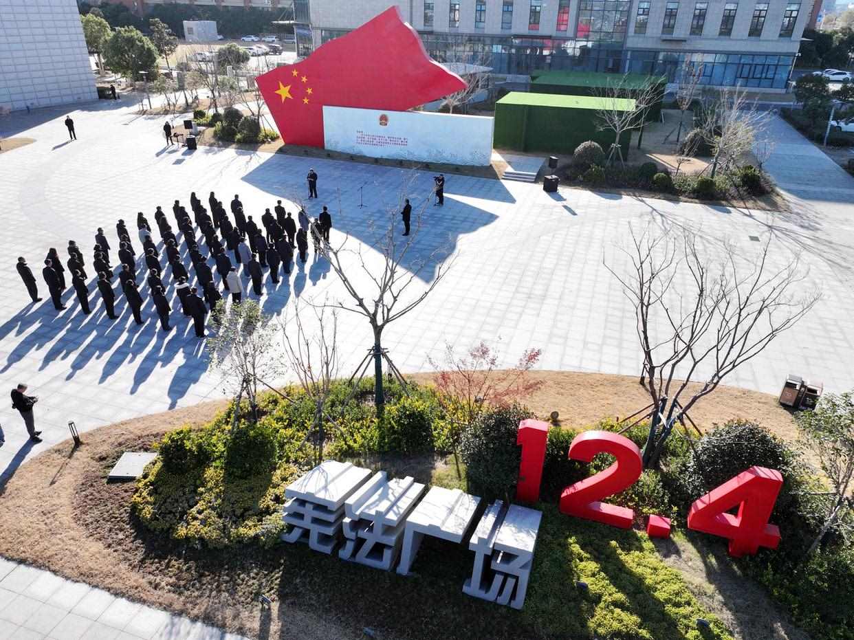 12月3日,江蘇省連云港市連云區(qū)司法局組織司法人員在連云區(qū)憲法廣場開展“12·4”憲法宣誓暨法律宣傳活動。(工人日報通訊員 王春 攝)