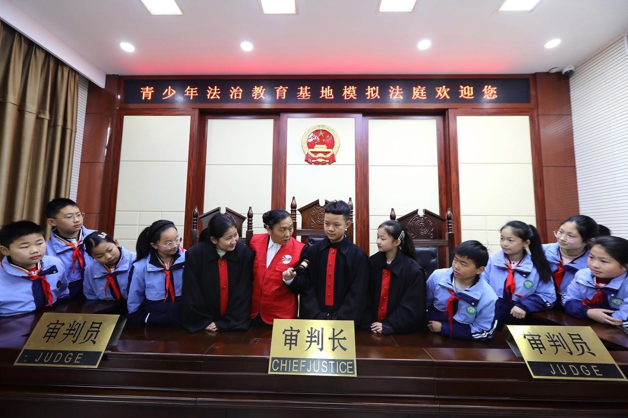 12月2日,孩子們在學(xué)習(xí)憲法知識、體驗“模擬法庭”,“沉浸式”感知法律的神圣與威嚴(yán),在潛移默化中接受法治教育,爭做一個學(xué)法、懂法、守法的新時代好公民。(工人日報通訊員 李海濤 攝)