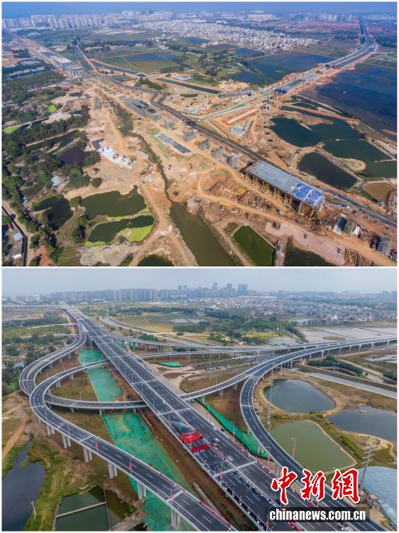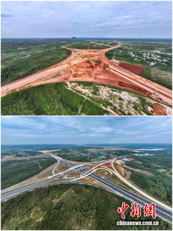 2025年12月18日,海南自由貿(mào)易港正式啟動(dòng)全島封關(guān)。近年來,海南自貿(mào)港建設(shè)在利好政策帶動(dòng)下不斷刷新“自貿(mào)港速度”,一個(gè)個(gè)重大項(xiàng)目、重點(diǎn)園區(qū)拔地而起,直觀呈現(xiàn)海南自貿(mào)港的蓬勃生機(jī)。這里正成為中國對(duì)外開放的新前沿、互利合作的新熱土和推動(dòng)經(jīng)濟(jì)全球化的新引擎。上資料圖為2021年2月6日正在建設(shè)中的G15沈海高速公路??诙雾?xiàng)目海秀互通,下資料圖為2022年12月28日G15沈海高速公路??诙谓ǔ赏ㄜ?。(拼版圖,無人機(jī)照片)
