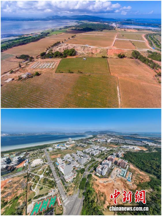 2025年12月18日,海南自由貿(mào)易港正式啟動(dòng)全島封關(guān)。近年來,海南自貿(mào)港建設(shè)在利好政策帶動(dòng)下不斷刷新“自貿(mào)港速度”,一個(gè)個(gè)重大項(xiàng)目、重點(diǎn)園區(qū)拔地而起,直觀呈現(xiàn)海南自貿(mào)港的蓬勃生機(jī)。這里正成為中國對(duì)外開放的新前沿、互利合作的新熱土和推動(dòng)經(jīng)濟(jì)全球化的新引擎。上資料圖為2020年6月18日俯瞰尚未開發(fā)的海南陵水黎安國際教育創(chuàng)新試驗(yàn)區(qū)所在地,下資料圖為2025年11月22日已初具規(guī)模的海南陵水黎安國際教育創(chuàng)新試驗(yàn)區(qū)。(拼版圖,無人機(jī)照片)