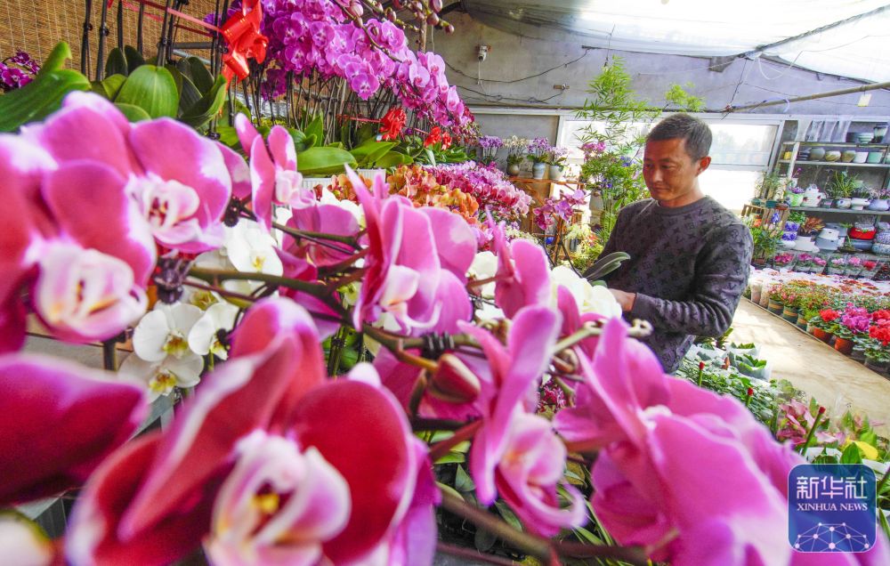 ↑1月22日,河北省遵化市遵化鎮(zhèn)張家坎村農(nóng)民在暖棚管護(hù)花卉,準(zhǔn)備供應(yīng)節(jié)日市場(chǎng)。新華社發(fā)(劉滿倉(cāng)攝)