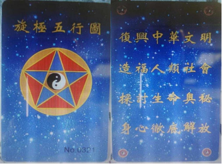 ▲“乾源文化”非法組織銷售的“旋極五行”圖卡,聲稱此卡“具有宇宙能量”,可以幫助學(xué)員提升自我
