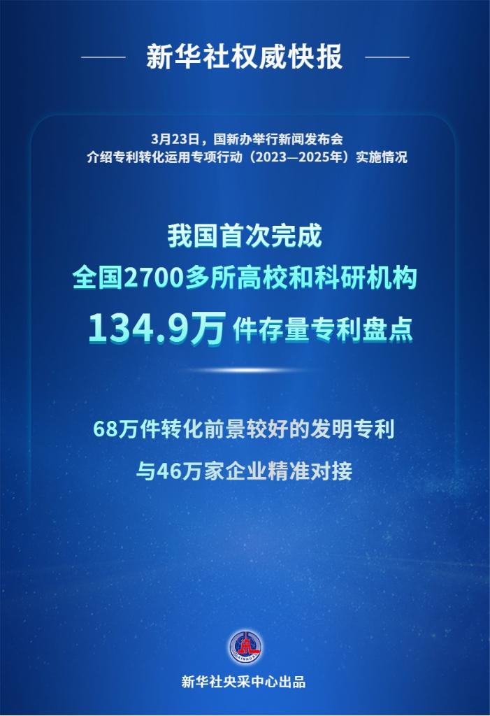 3月23日,國新辦舉行新聞發(fā)布會(huì)介紹專利轉(zhuǎn)化運(yùn)用專項(xiàng)行動(dòng)(2023—2025年)實(shí)施情況。