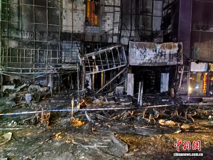 29日1時許,起火建筑物東側(cè)樓體外墻可見大面積燃燒痕跡,緊鄰?fù)ǖ赖膸组g門面房過火,受損嚴重。門面房前邊有多輛電動自行車被燒成鐵架子。