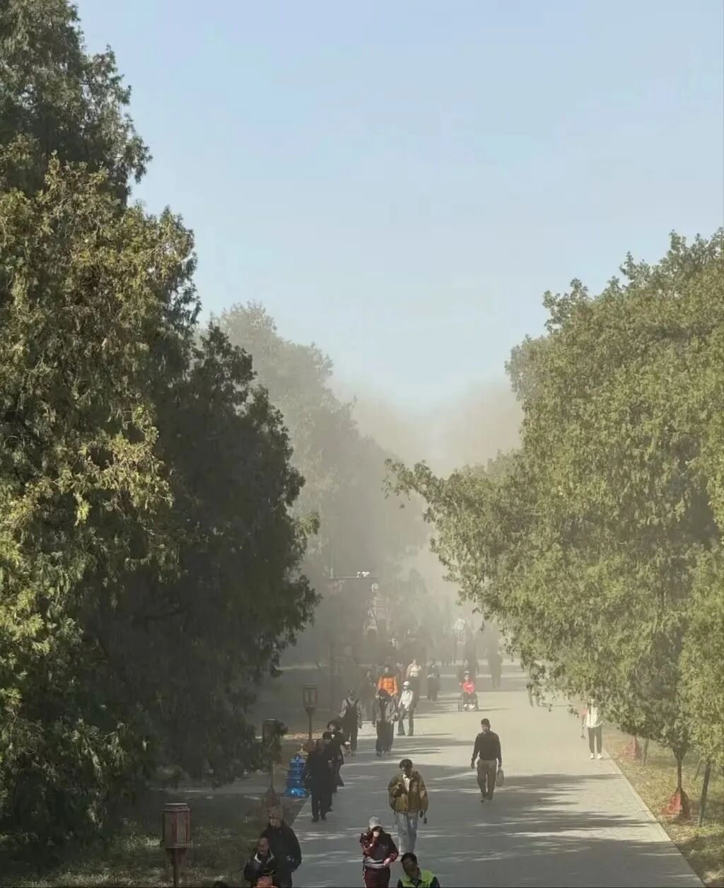 △北京一公園內(nèi)“塵瀑”般的圓柏花粉。圖片來(lái)源:中國(guó)青年報(bào)微信公眾號(hào)