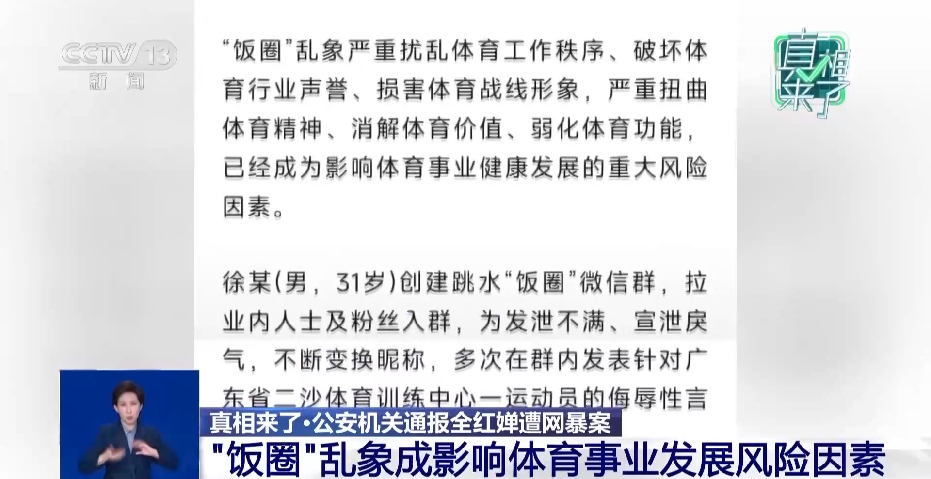 4月10日晚,公安部網(wǎng)安局就奧運(yùn)冠軍全紅嬋遭網(wǎng)絡(luò)暴力案發(fā)布通報(bào),涉案人員徐某因在“飯圈”微信群惡意拉踩、發(fā)表侮辱言論,被公安機(jī)關(guān)依法行政拘留并處罰款。