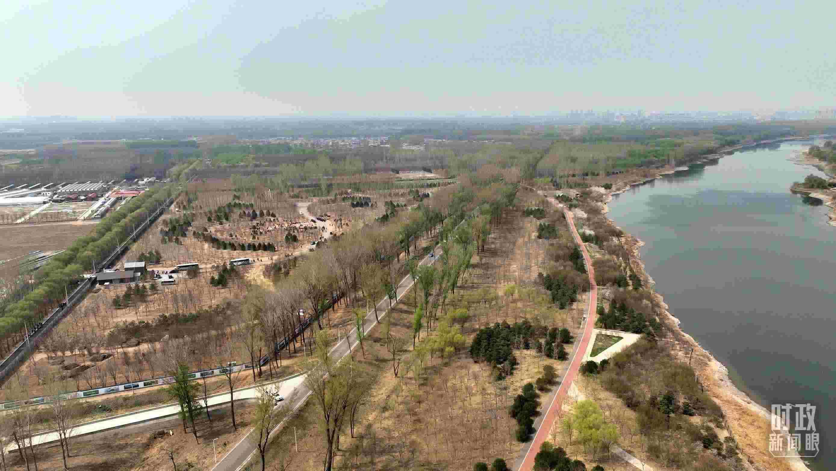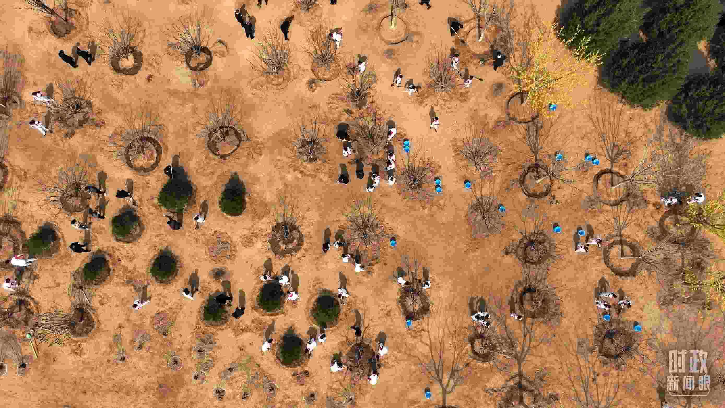 △遠(yuǎn)眺北京市通州區(qū)潞城鎮(zhèn)植樹(shù)點(diǎn)。(總臺(tái)央視記者劉岳拍攝)