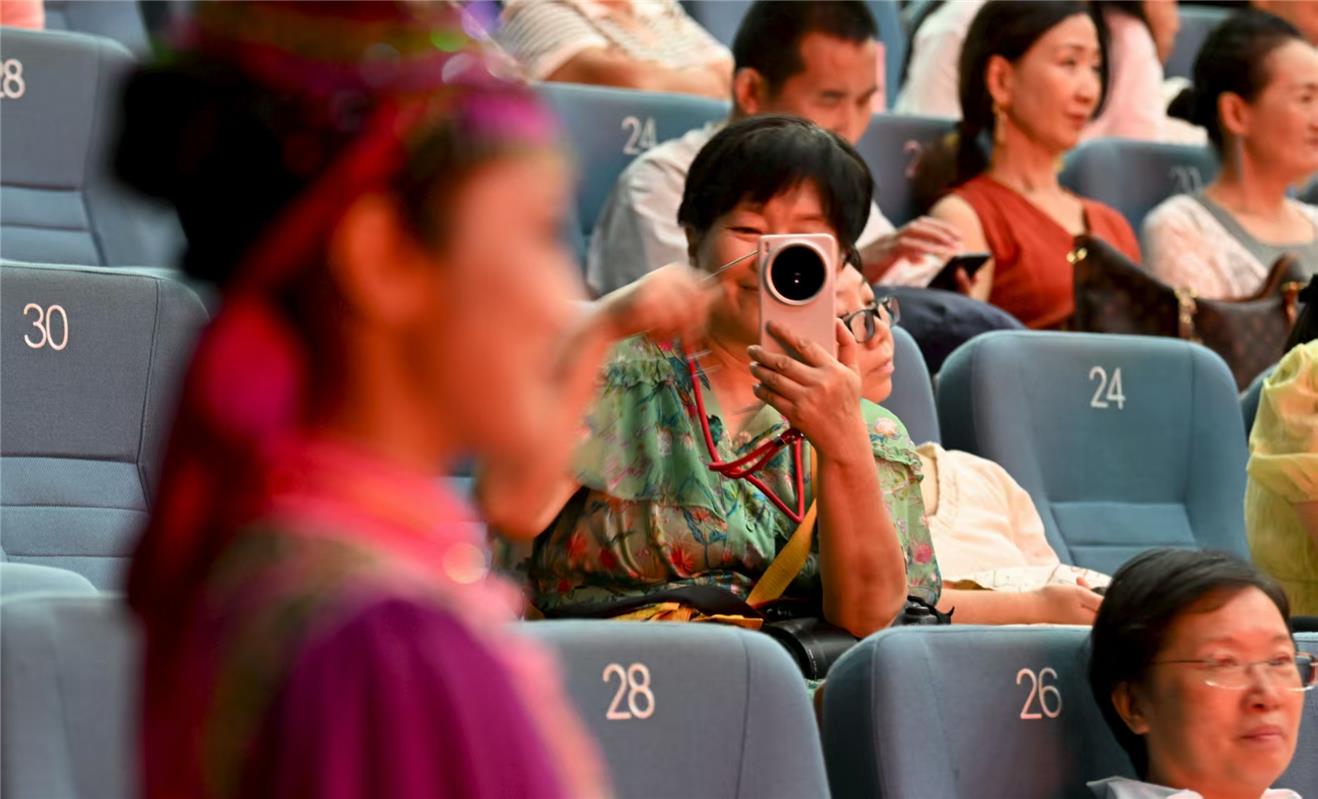 “從草原來(lái)到天安門(mén)廣場(chǎng),高舉金杯把贊歌唱……”“藍(lán)藍(lán)的天空白云飄,白云下面馬兒跑……”互動(dòng)環(huán)節(jié)中,東莞市民與烏蘭牧騎隊(duì)員共同唱起《贊歌》《草原上升起不落的太陽(yáng)》,兩首膾炙人口的內(nèi)蒙古經(jīng)典歌曲,讓東莞市民與北疆文化靠得更近,對(duì)北疆大地向往更深。