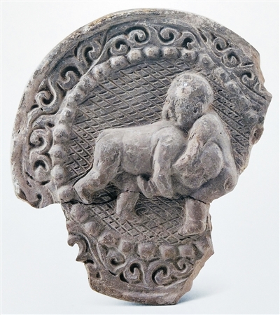 戰(zhàn)國(guó)時(shí)期樹木鳥獸紋瓦當(dāng)。