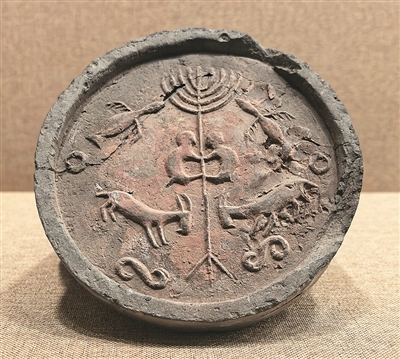 遺址展示館內(nèi),戰(zhàn)國(guó)時(shí)期樹木鳥獸紋瓦當(dāng)、漢代“富樂(lè)未央,子孫宜昌”銘文磚、北魏角抵瓦當(dāng)?shù)冉ㄖ?gòu)件,訴說(shuō)著古城的千年繁華。樹木鳥獸紋瓦當(dāng)正中有一株挺拔的樹,弧形樹冠向上舒展,枝葉兩側(cè)對(duì)稱雕刻振翅飛鳥,樹干上的兩只猴子呈攀緣姿態(tài)相對(duì)而立,樹根部對(duì)飾兩只山羊,造型質(zhì)樸。內(nèi)蒙古師范大學(xué)北疆文化研究中心主任陳永志介紹:“樹冠飛鳥、猴子攀樹題材源自中原地區(qū)靈魂升天、王侯將相等文化元素,而對(duì)羊紋又具有草原游牧民族風(fēng)格。這件瓦當(dāng)生動(dòng)體現(xiàn)了中原文化與北方草原文化的交融?!?/p>