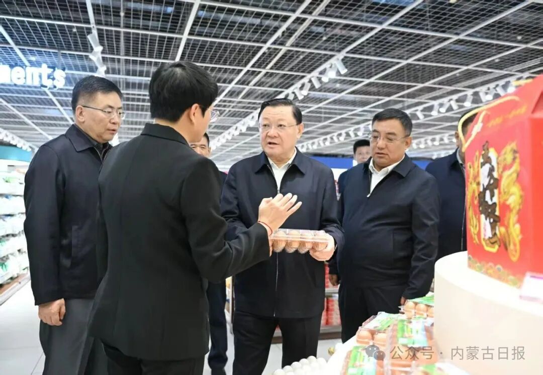 節(jié)日期間的美通批發(fā)市場車水馬龍,王偉中來到這里,走進食全食美超市,詳細詢問商品產地、存儲、價格、運銷等情況。他說,民以食為天,食以安為先。要強化重要民生商品供應保障,嚴格源頭追溯、嚴把質量關口,加強食品安全監(jiān)管,保障好人民群眾的“菜籃子”、“米袋子”、“果盤子”,守護好“舌尖上的安全”。我們內蒙古農牧業(yè)資源富集,要支持和引導相關企業(yè)聚焦“有特色、高品質”目標,主動適應市場需求,延伸產業(yè)鏈條,提高產品附加值,更好滿足人民群眾對高品質生活的追求,有效帶動農牧民增收致富。